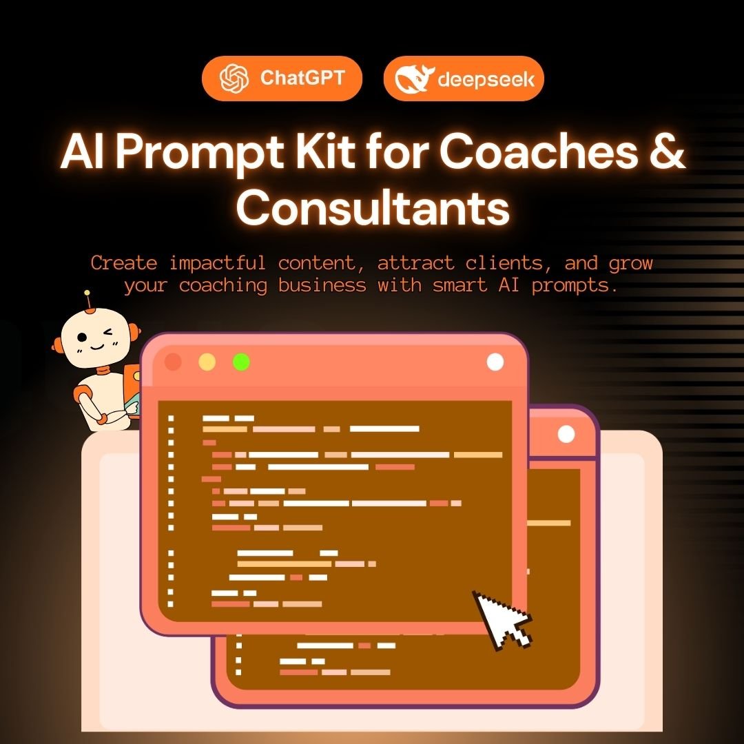 The AI Prompt Kit for Coaches & Consultants is a powerful collection of AI-crafted prompts designed specifically for coaches, consultants, mentors, and advisors. This toolkit simplifies content creation for your website, social media, email newsletters, client sessions, and lead generation efforts — helping you focus on what you do best: guiding and transforming lives.